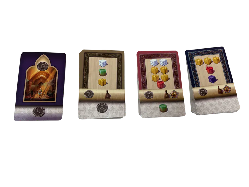 📜當有玩家完成了九張訂單,或是技能等級達到14級遊戲將宣告結束,計算玩家的訂單分數,技能等級的加分,聲望標記的分數加總起來,分數最高的玩家就是我們的地毯Master拉!