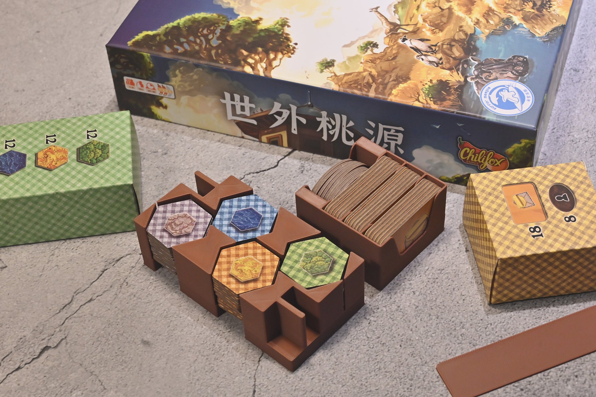 適用《世外桃源》Spectacular的3D列印板塊收納盒,搭配遊戲內附的紙盒使用。包含一個公用動物板塊收納盒,分類各種動物板塊;以及一個任務板塊收納盒,分類A、B、C類的任務。