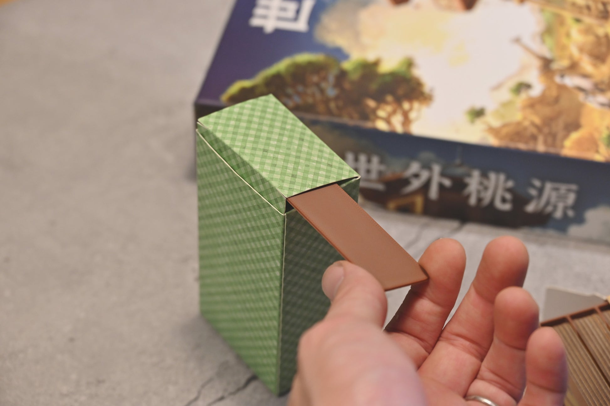 收納盒可直接裝入遊戲內附的紙盒。3D列印的盒子放入紙盒後,紙盒會較不容易打開,隨收納盒會附上一個「開盒器」來改善此問題。