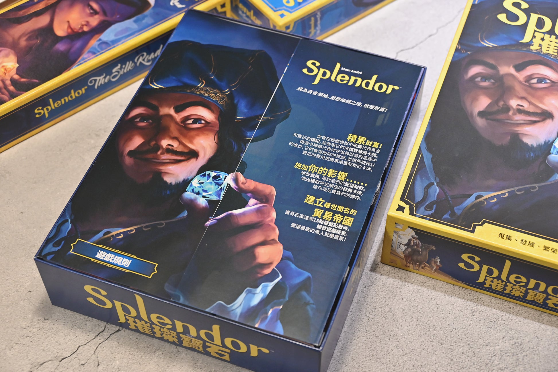 適用遊戲:《璀璨寶石》(Splendor) 主遊戲 +《日不落》(The Sun Never Sets)+《絲綢之路》(The Silk Road)