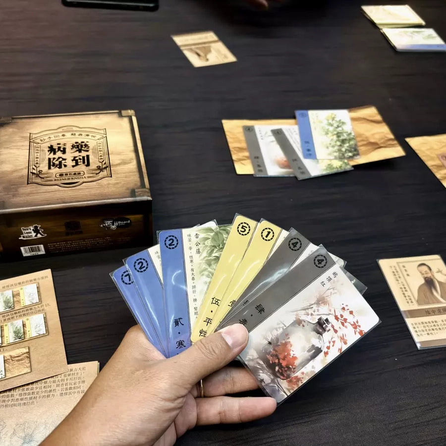 由知名桌遊設計師-RK製作的《毒藥》美術重製! 玩家在遊戲中將扮演一名中醫師,通過將藥材卡放到包藥紙上來為病患配藥。 但要小心!正所謂同行三分仇,遊戲過程中,其他中醫師可能會在包藥紙中放入毒藥卡來打亂你的計畫! 究竟誰能獲得「再世華佗」的稱號呢?