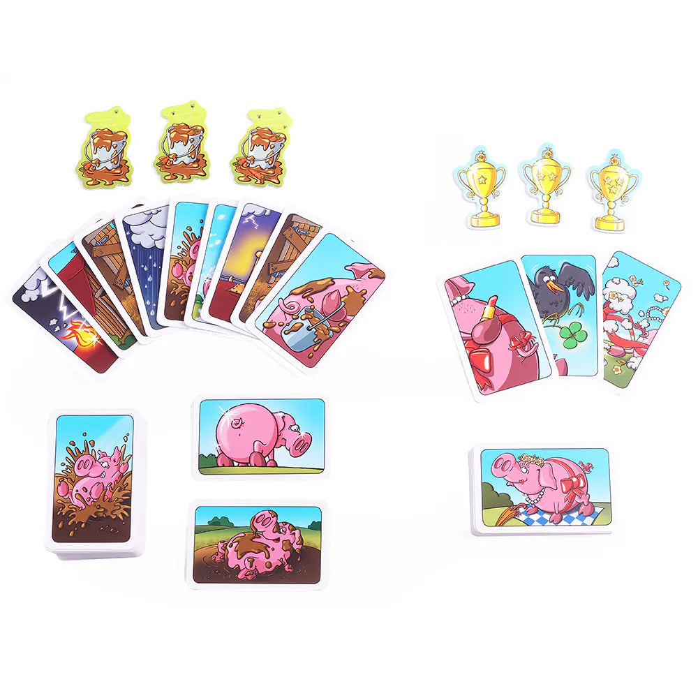 遊戲目標:玩家透過策略性出牌的方式,將自己的小豬都變成髒小豬,同時將其他玩家的小豬洗乾淨。最先將所有小豬變為髒小豬的玩家為贏家。