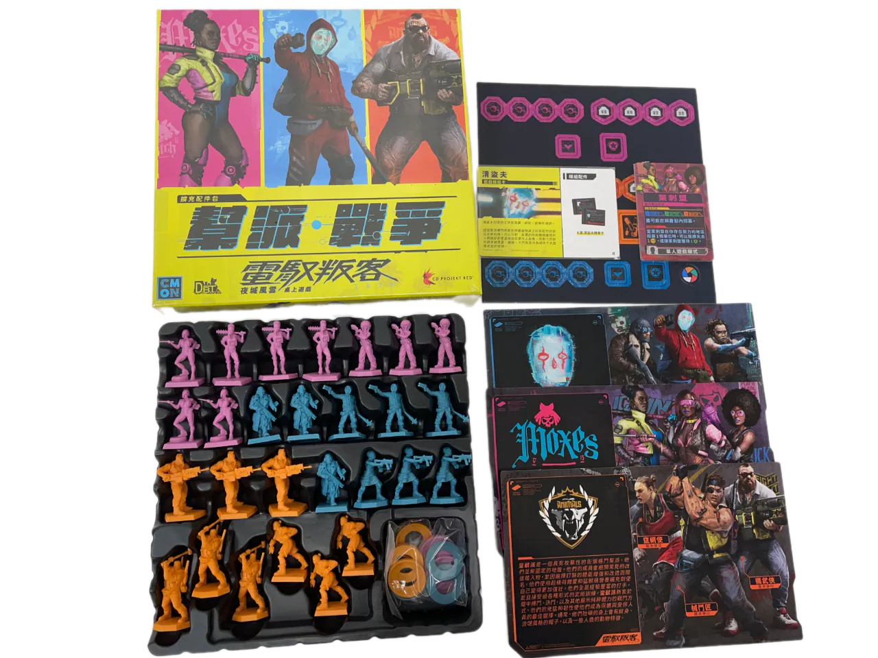 《電馭叛客2077:夜城風雲》是一款對戰型桌遊,玩家將扮演殘酷無情的幫派領袖,互相爭奪並控制『夜城』這個光鮮亮麗的地獄。用火力與駭網技術與其他幫派大幹一場,你領導的幫派將在地下世界獲得一席之地!直到支配整個夜城。最有種的人才會被銘記,只有擁有最響亮街頭聲譽才能在龍蟠虎踞的『夜城』中稱霸!!