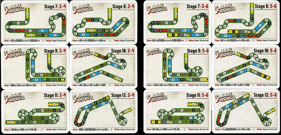 Flamme Rouge: Peloton includes variants for solo play and for games with up to twelve players, each controlling only one rider.