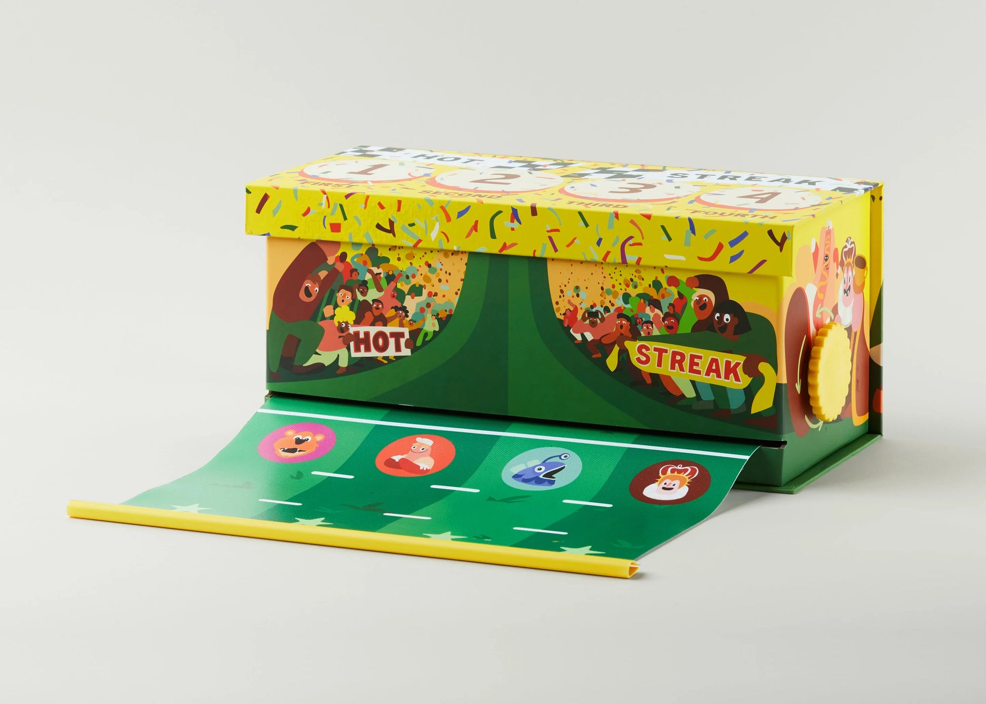 Comes with 4 chunky mascot figures and a ridiculously long pull-out racetrack.