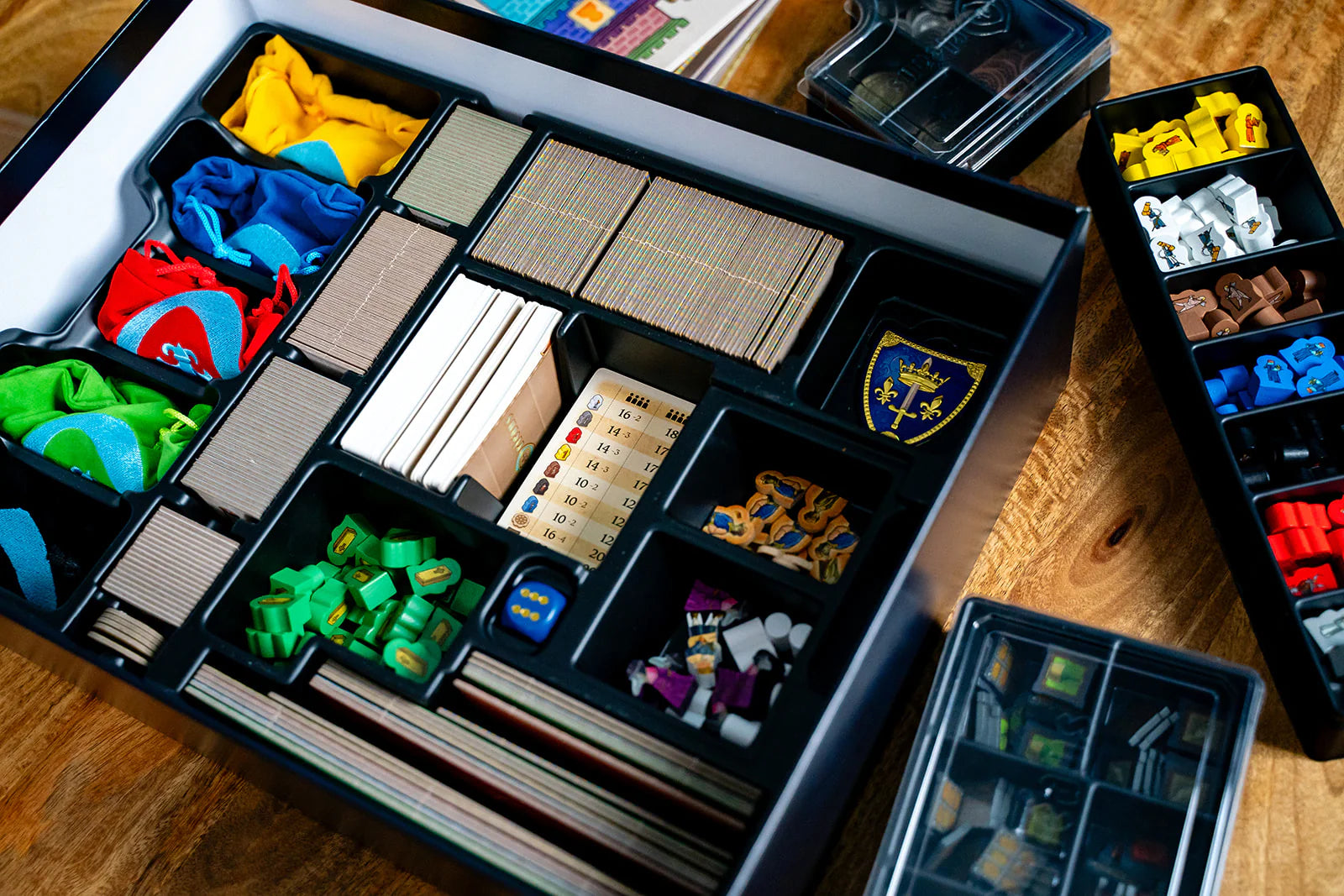 This collection contains everything released for Orléans in a beautifully crafted deluxe format, including all Promo Place Tiles and 3 brand new Place Tiles!