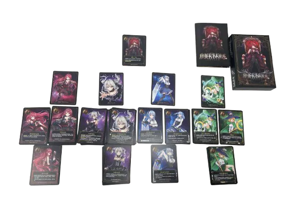 是日系卡牌對戰遊戲,一套4件套裝,主打是漂亮的畫風和新增的各種女神 (總共8)